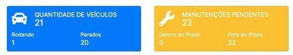 Manutenções preventivas e corretivas, alertas de proximidade e tempo excedido das manutenções.
